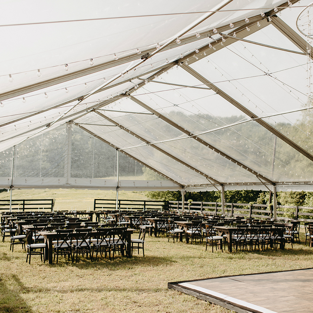 Its clear walls and roof create an elegant, open-air ambiance while providing the comfort of a covered venue.